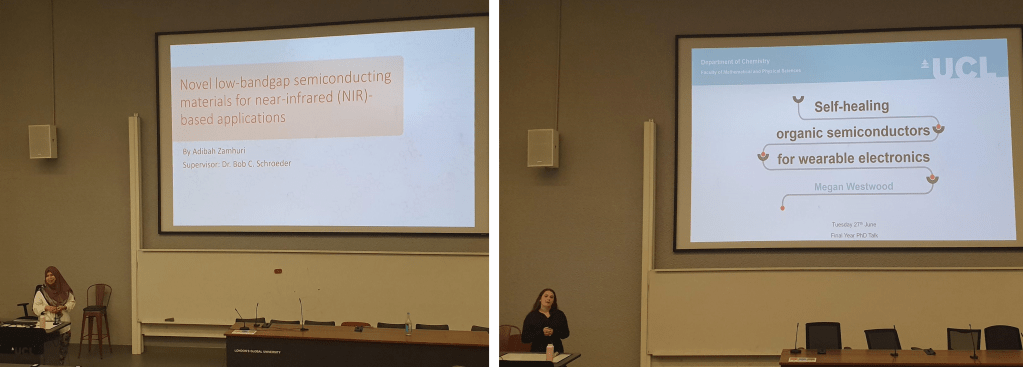 December 2023: Adibah attended the RSC Chemistry Poster Symposium to present her exciting work on low bandgap organic semiconductors.