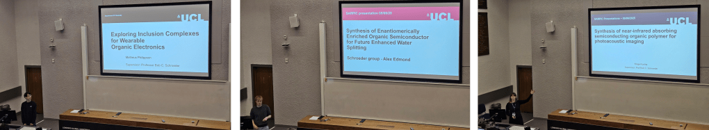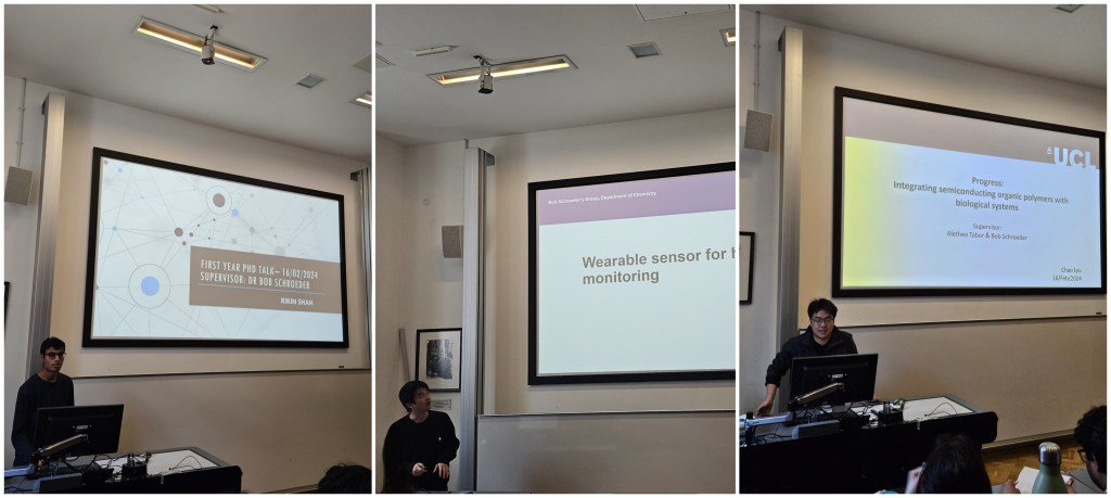 February 2024: Rikin, Mingyu and Chao did a brilliant job at introducing their PhD projects at the 1st year PhD talks within the Chemistry Department.
