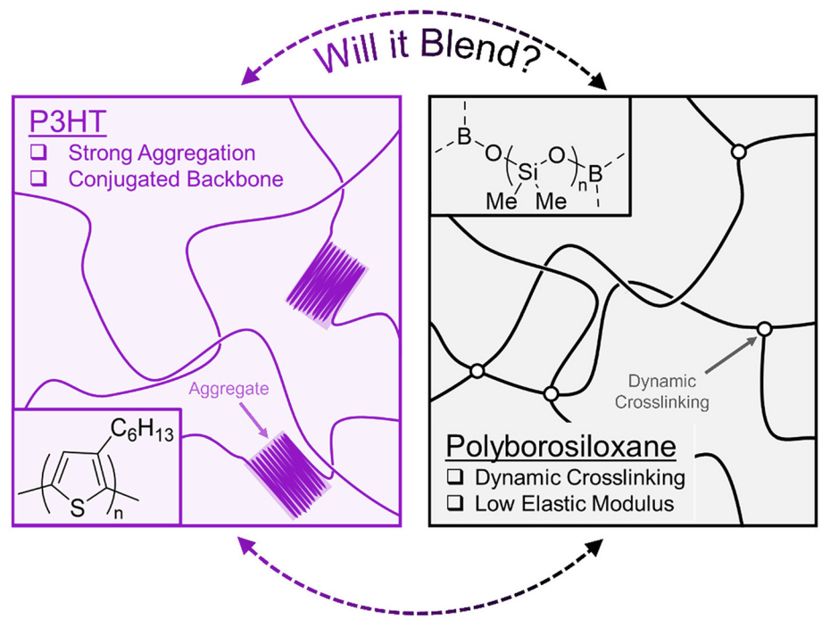 October 2024: Pete and Megan’s work on blending P3HT with polyborosiloxane elastomers was published RSC Applied Polymers. This project was both exciting and full of unexpected results with each experiment. A special shout-out to Pete for his deep dive into rheology!