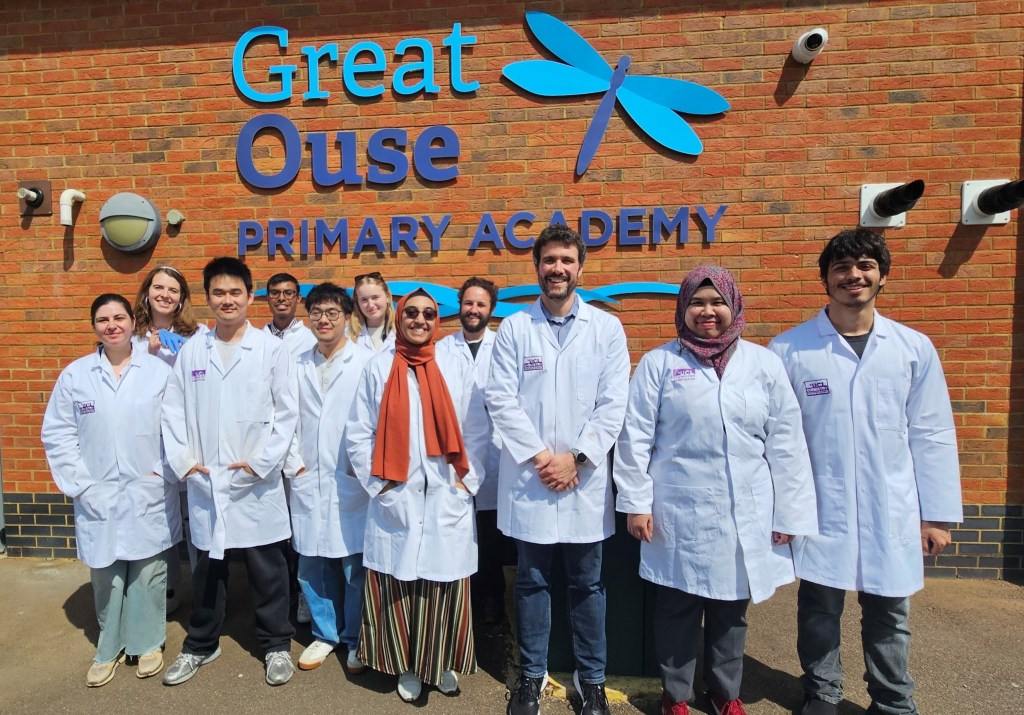 June 2023: Aisha, Jessie and Bob took part in a careers day at Great Ouse Primary Academy in Bedford to talk to students about careers in science and demonstrate some colourful chemistry experiments.